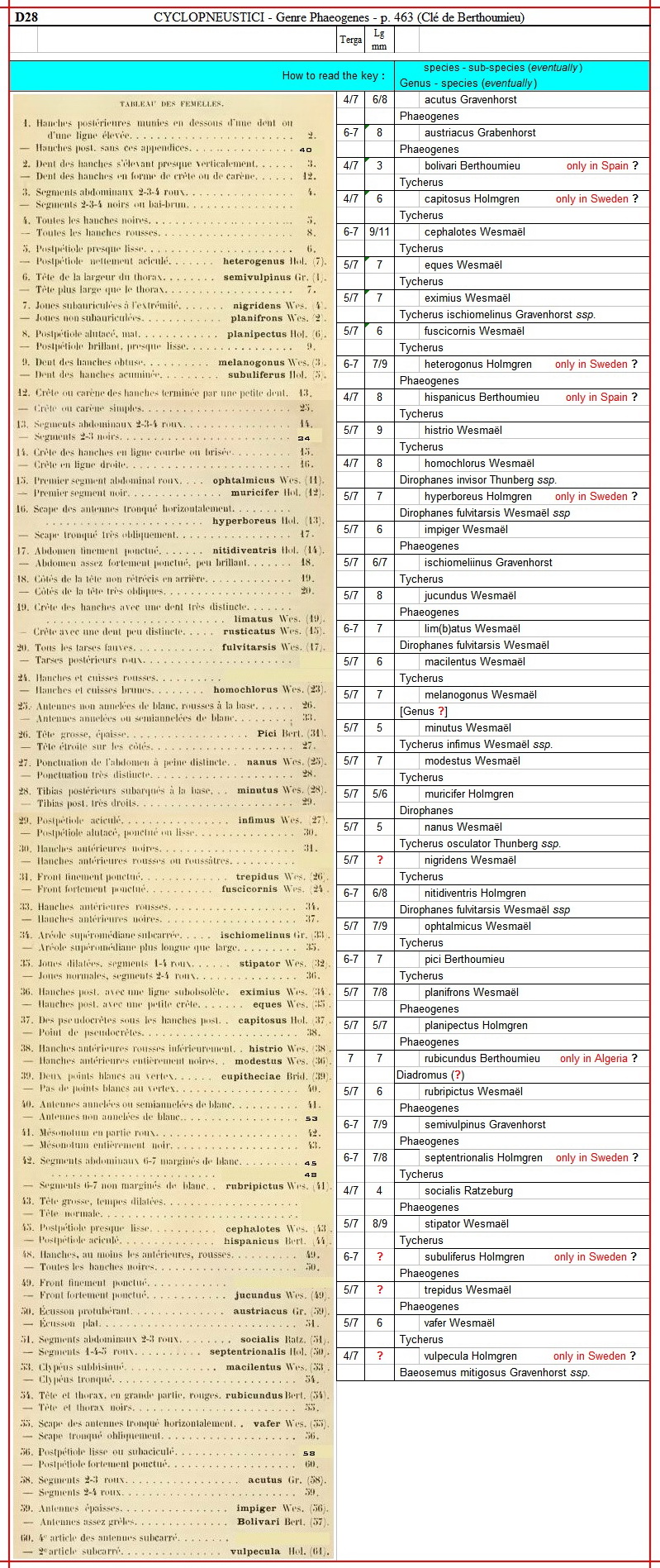 BANCHINAE ♂ & ♀ (of France & Italy) , determination of Genera (Version 2) - Ichneumonidae