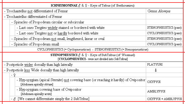 See in boards below the keys of Tribes, SubTribus & Genera ♀ (beginning)