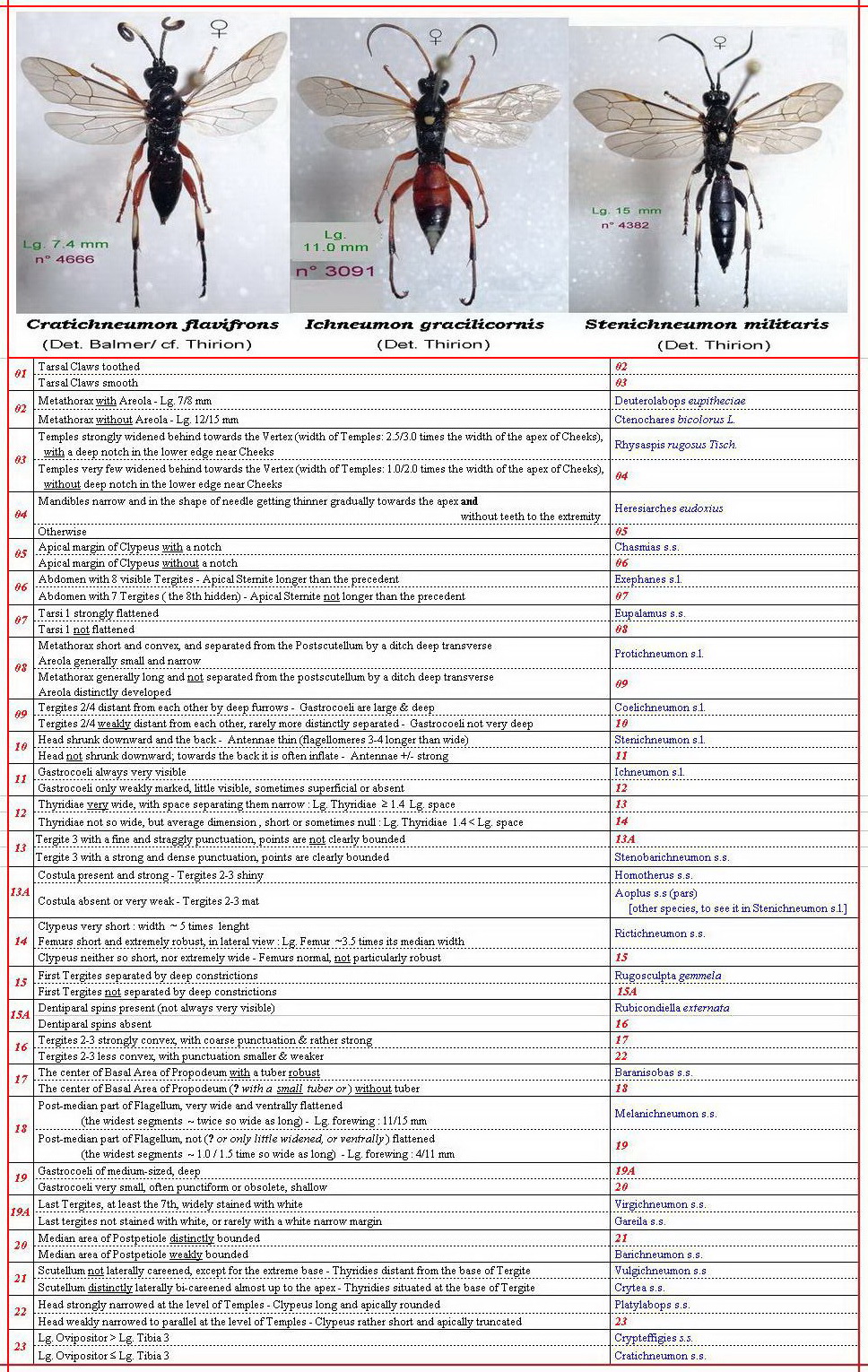 However the Ichneumons s.s. & Coelichneumons s.s. will not be treated, it will be necessary to you refer to the works of Hilpert & Riedel quoted at the beginning of this message.