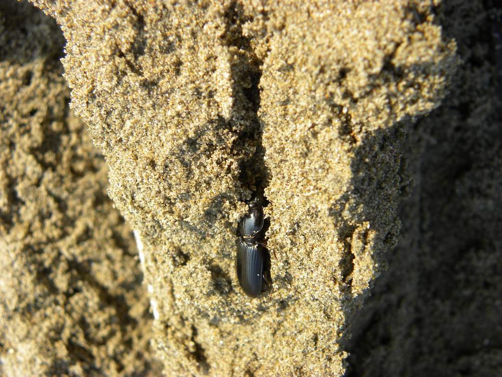01 Normalmente si osserva Parallelomorphus laevigatus in tane superficiali da lui scavate sulla sabbia sotto le alghe e i corpi morti spiaggiati lungo la battigia;