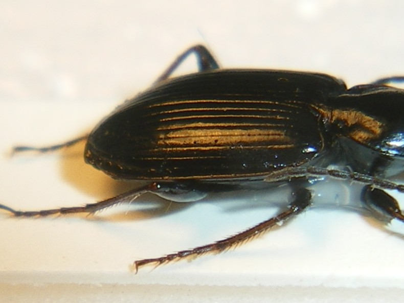 ciao giacomo beh, direi che ora i punti si vedono abbastanza bene... per quanto riguarda la qualità delle foto, l'ultima di lato (la posizione che serviva di più  ) in effetti non è un granché, a parte l'inquadratura che lascia fuori l'apice delle elitre, vedi che la luce è diretta in modo che il dorso delle elitre è praticamente in ombra; dovresti provare a dirigerla più obliquamente di lato finché trovi la posizione in cui la superficie che ti interessa è illuminata più uniformemente in sostanza, cerca di rendere ben visibili sia la 3a interstria con i punti, sia la parte apicale della 5a stria, con la depressione di cui parlavo  ... giusto per avere la conferma definitiva