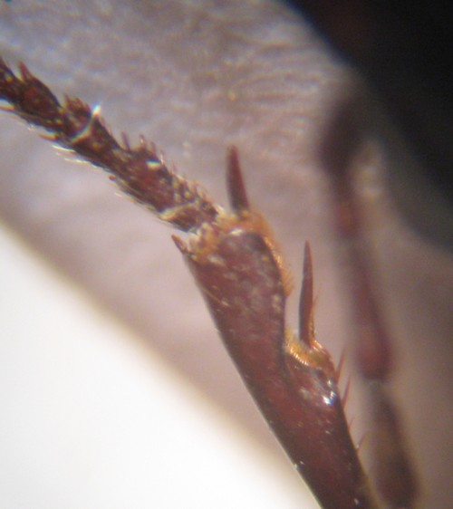 Sembra proprio un'altra cosa... Metto comunque una foto dei due esemplari a confronto e una foto del margine flessorio della tibia anteriore chiesta da Maurizio.