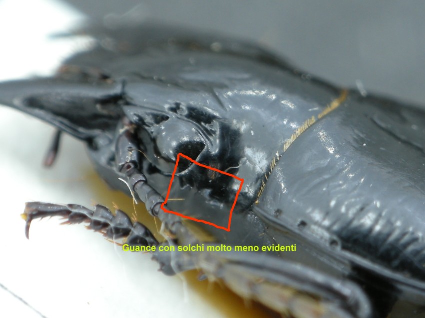 Ho controllato: la guancia corrisponde ( :hp: ), le elitre purtroppo si sono seccate troppo distanziate e non si capisce se l'apice forma il triangolo o no. Naturalmente è colpa mia, preparo gli insetti in maniera pedestre :oops: . Provo a riammorbidirlo e congiungere le elitre, ma ormai direi che è sicuramente grandicollis.