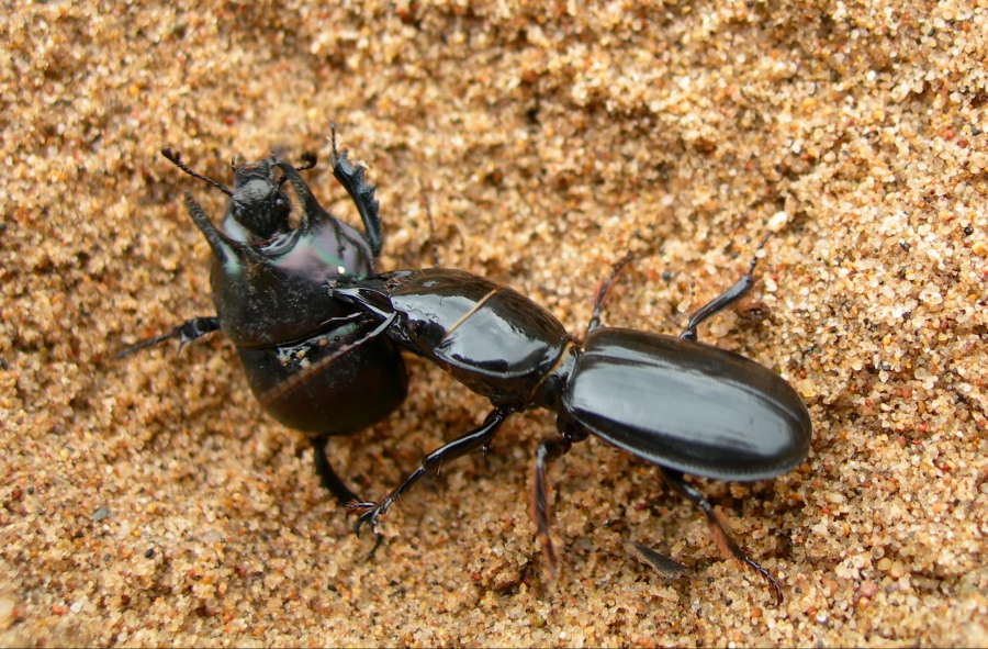 Due giorni fa ho fatto un giro tra Marina di Arbus e la foce del Rio Piscinas (Sardegna sud-occidentale, provincia del Medio Campidano). Girando tra le dune sabbiose ma già in parte consolidate, che si estendono nell’entroterra per diverse centinaia di metri mi sono imbattuto in una scena alquanto terrificante: il combattimento all’ultimo sangue tra due grossi e splendidi coleotteri.