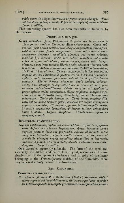 Ma a me interessava :( :oops: Che distribuzione ha? Non ho trovato niente sul web, la descrizione originale dovrebbe essere tra queste specie descritte da Bates in On new genera and species of Coleopterous Insects from Mount Kinibalu, North Borneo -
