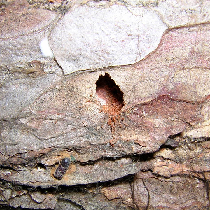 Trovata assieme a delle altre sotto la corteccia di un tronco di Pinus sp. ancora in piedi.