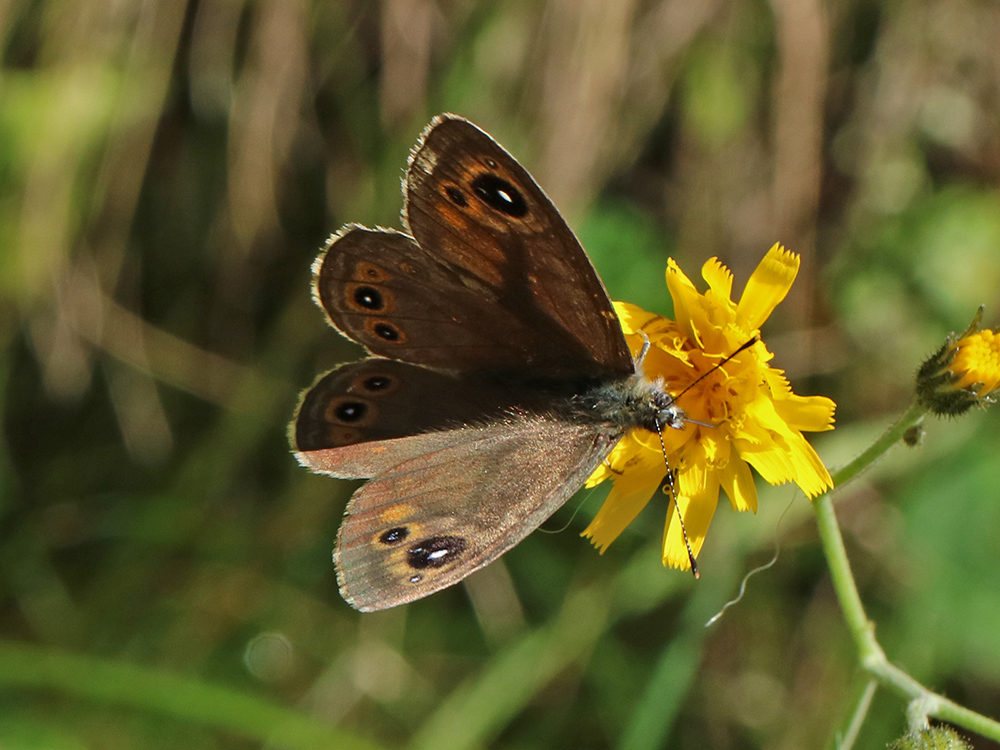 Potrebbe essere Lasiommata o Erebia, o altro, ma non ho trovato esemplari con le tre macchie di diametro differente sulle ali anteriori...