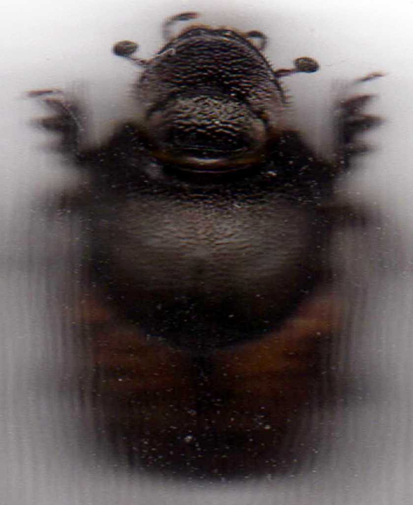 Finalmente ho avuto un po' di tempo per ricontrollare l'Onthophagus X Sinceramente non ho ancora capito bene il discorso sulle suture genali  (quanta pazienza ci vuole con me  )... Ho capito dove sono, ma non sono sicuro di aver capito bene il significato di "auricolate"... Penso di aver capito guardando un po' di foto di O. fracticornis, ma cercando la definizione sia sul dizionario che in rete sembra che la parola non esista Comunque... Ho provato a fare un paio di "foto" della testa, sono sufficienti? Riguardo alle epipleure... A me sembrano proprio dello stesso giallo ocra del disco elitrale; solo la parte più vicina alla base delle elitre è scura, ma non proprio nera.