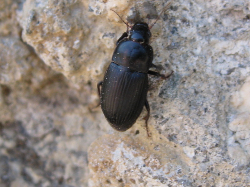 da quel che si vede dalla foto, corpo piuttosto convesso, pronoto con fossette basali strette e ben incise, base apparentemente non punteggiata, antenne oscurate... e dall'ambiente, terreno ghiaioso riportato e in fase di colonizzazione vegetale, nonché esposto a sud... direi :oops: che potrebbe plausibilmente essere :oooner: un Harpalus (Harpalus) serripes (Quensel in Schonherr, 1806) :no1:
