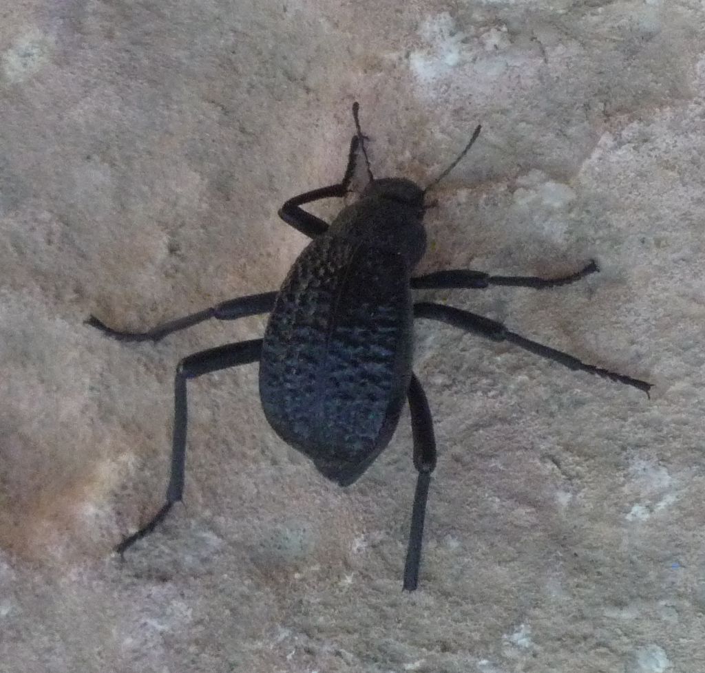 Questa primavera mia moglie è stata in Giordania; riguardando le sue foto ho trovato anche questi tre scatti del 4/05/2010 ad un tenebrionide che passeggiava tra le rovine di Jerash. Non so indicare le dimensioni, ma non doveva essere molto piccolo dal momento che sono fatte con una macchina fotografica digitale compatta. |