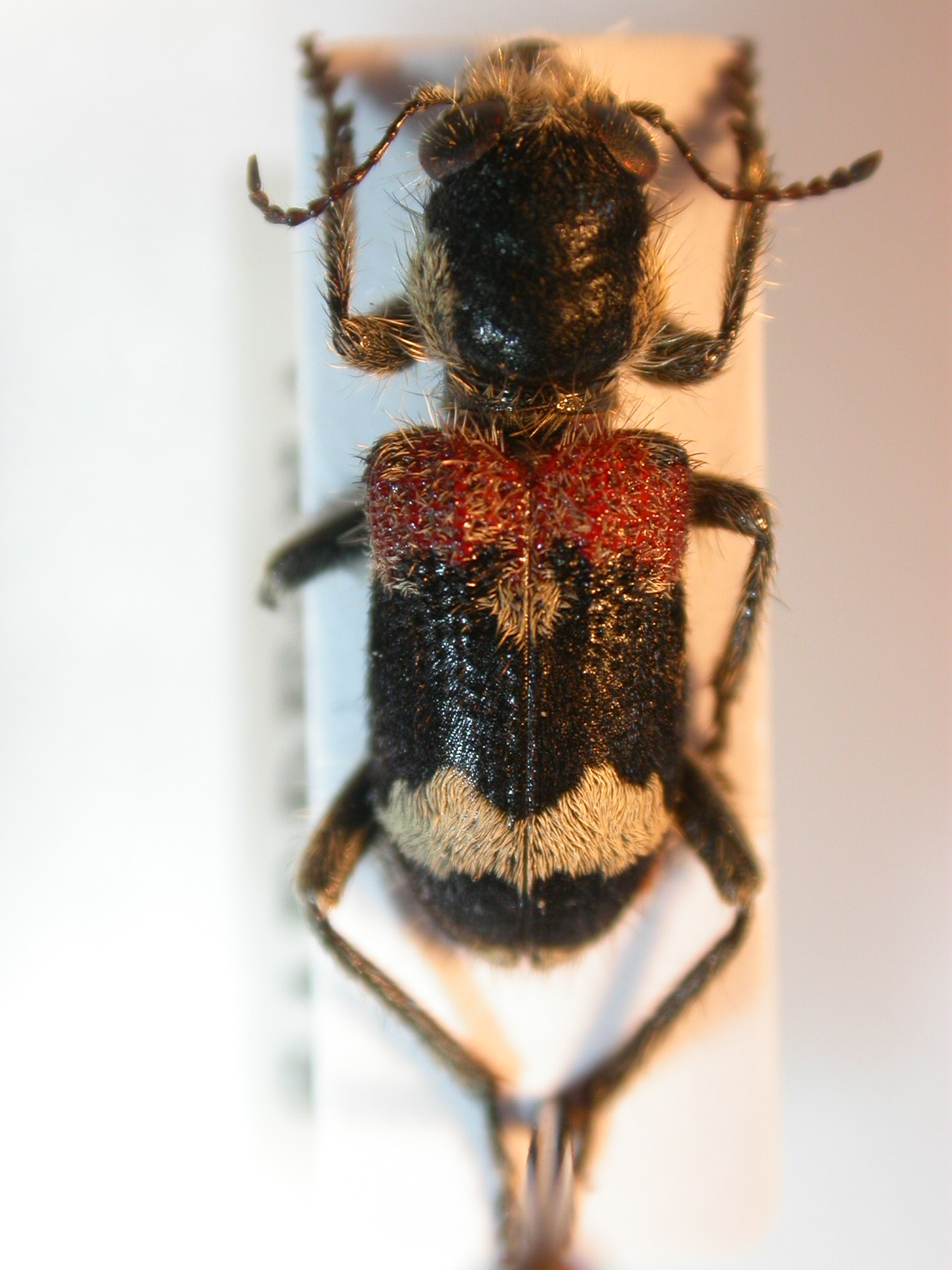 Dando uno sguardo alle mie scatole di miscellanea ho trovato questo cleride per il buon Iuri :D . Lo posto per sapere se è un Clerus mutillarius e, se è lui, per sapere qualcosa in più sulla sua distribuzione. In Faneur la cartina mi sembra discutibile.