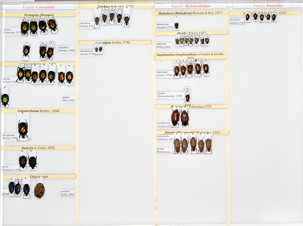 Che belle ordinate le vostre!!!!! La mia, confrontata con le vostre, ha piu carta che insetti Vorrà dire che,visto che prevedo che a fine anno dovrò ri-organizzare varie scatole (almeno lo spero!  ), mi sa che nelle nuove farò sparire le strisce lunghe dei generi copiando un po da voi, se non vi offendete  Ovviamente cambierò anche l'orientamento degli insetti! Honza ha scritto: Coleoptera World system:) Honza, your collection is fantastic !!!!!! So you use blue for tribus, green for genus, and white for specie? Fumea crassiorella ha scritto: Bravo Nicola  , per essere in attività da poco tempo hai già una bella raccolta, ben ordinata e cartellinata, complimenti !!!! Grazie Apoderus ha scritto: Detto questo, guardare le immagini delle tue scatole mi fa un po' di malditesta. In effetti... Prometto che al prossimo giro tolgo gli effetti collaterali!