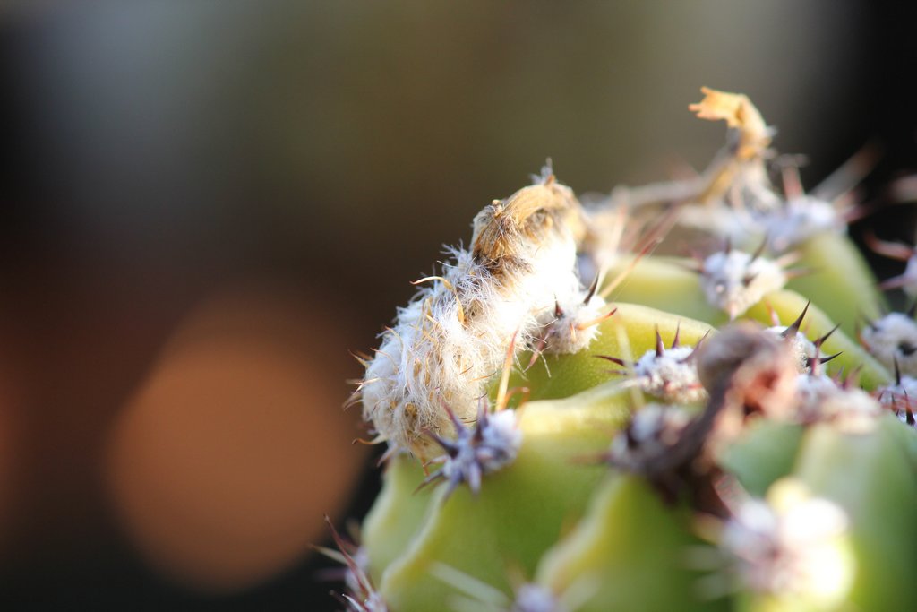 Intanto, poco prima di sera, ho fatto delle prove comparative sui soliti cactus sul balcone (che non si muovono, neanche se c'è una bufera), senza cavalletto, con le due macchine con rispettivi zoom Olympus 40-150 e Canon 55-250, con montata la lente 500D su entrambi. Housato la massima focale (150) sull'Olympus, e circa uguale sulla Canon.