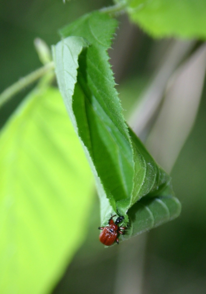 Ho segnalato qui la prima comparsa nella mia zona, alcuni giorni fa, degli adulti di Apoderus coryli (Linnaeus, 1758). Si tratta di una delle specie di Attelabidae più frequenti e, come spero di riuscire a mostrarvi, più interessanti della nostra fauna. Nel seguito vi proporrò mie immagine riprese in diverse situazioni e località, disposte in sequenza per illustrare soprattutto le peculiari modalità di confezionamento del "barilotto", "sigaro" o come lo vogliamo chiamare. Gli anglosassoni lo definiscono leaf-roll o solo roll. Grandi ha parlato (un po' pomposamente) di "nido pedotrofico".