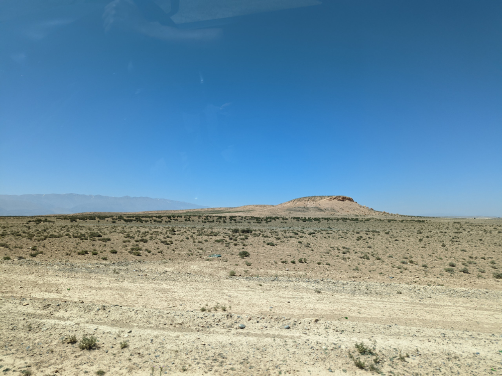 Proseguiamo poi verso Errachidia: il paesaggio cambia rapidamente e passiamo dalle praterie di alta quota tipiche dell’Alto Atlante a una zona di altopiano con Pioppi e coltivazioni per poi passare a un altro altopiano, più in basso, tipicamente predesertico dove le uniche piante sono cespugliose (Ephedra, probabilmente) o erbacee.