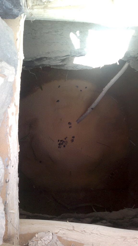Settimo giorno (03/06/2012)Tracciato settimo giorno Al mattino, dopo un’abbondante colazione, vado a fare un giro verso nord e mi fermo dove vedo il letto asciutto di un fiume, con vari cespugli. Mi metto a cercare ma non trovo assolutamente niente. Il letto del fiume è talmente secco da aver formato una crosta tutta “crepata” di argilla. Mentre camminavo su queste “placche” ho visto qualcosa muoversi e saltellare; guardo meglio e mi accorgo che c’erano moltissime piccole ranocchiette. Si vede che sotto quella crosta c’era comunque dell’umidità. Rientro verso l’hotel e trovo una quindicina di motociclisti austriaci che si erano fermati con le loro moto per trascorrere un pomeriggio nella piscina dell’hotel. Pista che dalla strada N13 porta all'hotel Facciata dell'hotel Mi incammino verso il pozzo trovato la notte precedente; porto con me il retino da sfalcio e strada facendo trovo un palo lungo un paio di metri al quale lego il manico del retino da sfalcio e così riesco a calare il retino nel pozzo e pescare alcuni tenebrionidi dal fondo. Dopo un paio di pescate gli altri insetti presenti si sono rintanati negli anfratti interni per cui desisto – per il momento – e nascondo il retino nelle palme adiacenti così da ritornarci la sera. Foto del pozzo, presa con telefonino Rientro in hotel e mi stendo un po’ a letto accendendo l’aria condizionata, perché era una caldo bestiale. Più tardi vado a cena e in attesa che fosse pronto un ragazzo che lavorava all’hotel mi invita per dopo a prendere un thè con lui e suo fratello. Un po’ mi scocciava perché era mia intenzione di andare subito a caccia, ma ho accettato comunque l’invito e infatti dopo cena siamo stati un’oretta buona a sorseggiare un thè alla menta e a fare quattro chiacchiere. Poi, scusandomi, ho cominciato a cacciare, cominciando dal terrazzo in cui eravamo perché alle luci erano arrivati molti piccoli scarabeidi, dopo di che mi sono avviato verso il deserto, raccogliendo molti tenebrionidi ed i soliti carabidi neri e bianchi. Ho visto anche quattro solifughi ma non sono riuscito neanche a pensare di prenderli perché così come li avevo visti apparire, altrettanto velocemente sono spariti (sono velocissimi). Sono tornato al pozzo ed ho pescato altri tenebrionidi ed i carabidi presenti. Verso le 2.00 sono andato a dormire. ..... segue .....