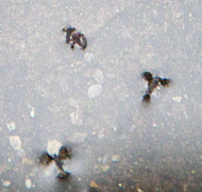 Poi, nel mezzo dell'assembramento sembrerebbero invece atteri o addirittura larve (ma la dissoluzione dell'aggregazione in un paio d'ore con l'asciugarsi della pozzanghera, pare mettere in dubbio anche questa ipotesi).