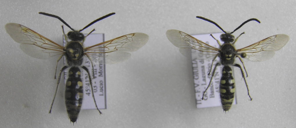 Tra tutti gli imenotteri visti  questa è la specie più numerosa - credo si tratti di Bembix olivacea