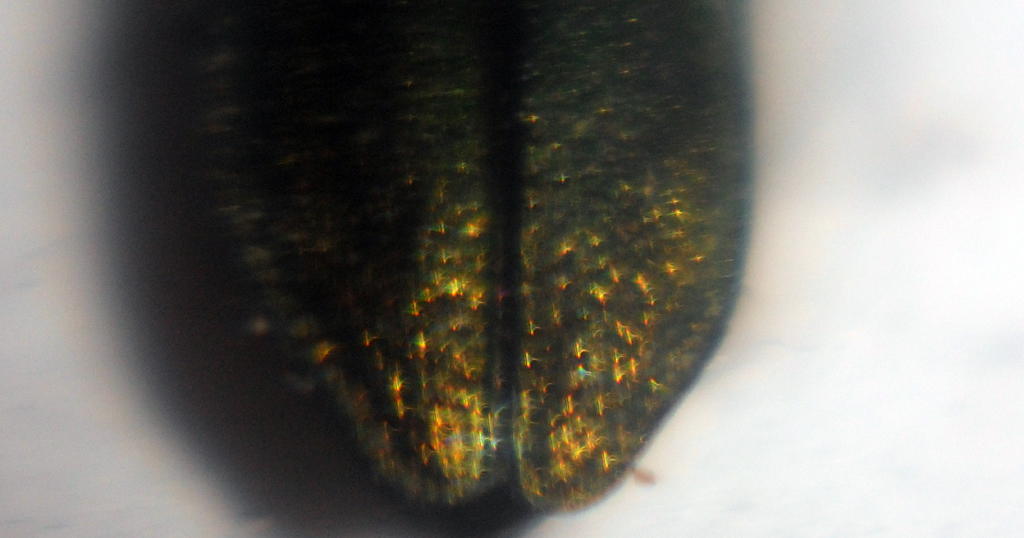 Allora, le antenne sono completamente scure e sulle elitre noto delle fossette lungo il bordo posteriore.