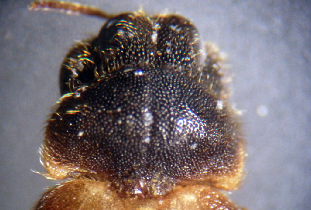 A prima vista mi sembrava un Lampiride normalissimo, ma dopo averlo ammorbidito l'ho osservato un po' sotto il microscopio ed ho notato una cosa stranissima: guardando da davanti la testa si nota un paio di occhi dorsali soprelevato, l'inserzione delle antenne e un piccolo paio di mandibole e sulla faccia ventrale ci sono altri due occhi grandi il doppio di quelli dorsali. Potrebbe essere un adattamento simile a quello che i Gyrinidi usano per guardare contemporaneamente sopra e sotto la superficie degli specchi d'acqua dove vivono?