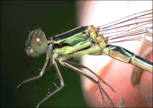Questa femmina credo di Lestes viridis l'ho letteralmente strappata dalla tela di un ragno che era in procinto di divorarla...