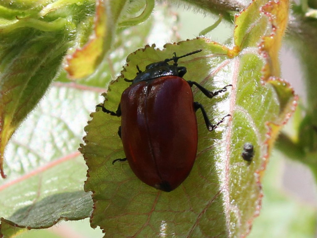 Ecco un paio di esempi tra gli scatti venuti "meglio". Stesso soggetto (Chrysomela populi), con focale 55m e 154mm, sempre con lente addizionale. la prima immagine è il fotogramma intero ridotto, la seconda un crop a dimensioni originali.