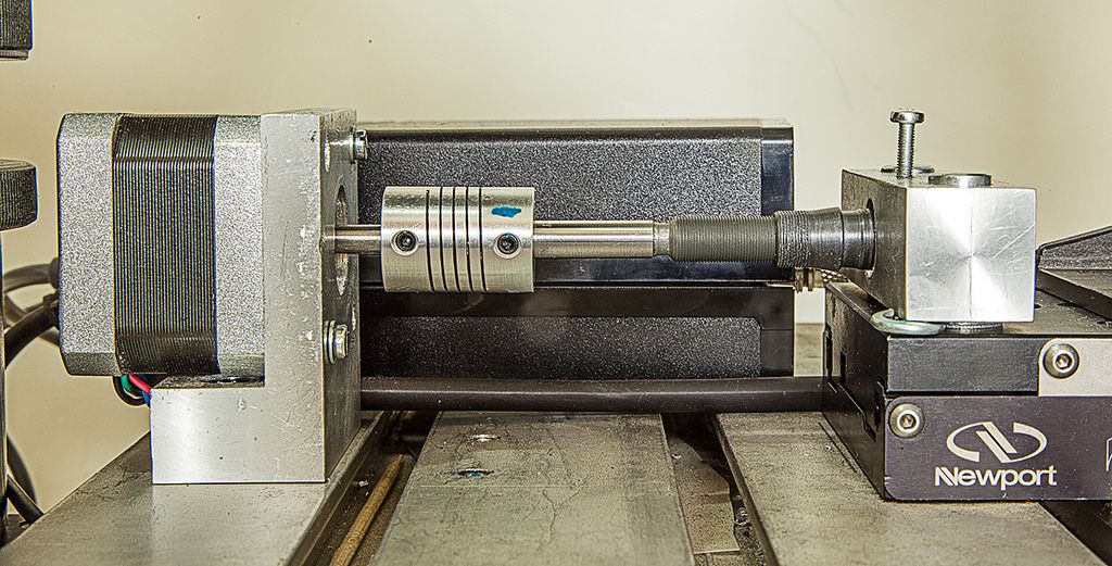 Una domanda: l'asse del motore e quello della vite sono solidali tra loro oppure l'asse della vite può scorrere all'interno del giunto? La vite micrometrica si muove in avanti man mano che si avvita, giusto?