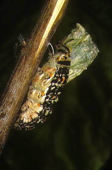 Comunque all'epoca naturalmente non avevo la digitale, perciò ho solo diapositive. Purtroppo il mio scanner dia è spirato dopo breve e dolorosa (per me) malattia, ed ora ho solo uno scanner piano che digitalizza anche dia, ma il risultato è molto mediocre. Aggiungo lo stesso delle immagini che possono essere interessanti: la sequenza dell'ultima muta di un bruco di hospiton, con formazione della crisalide.