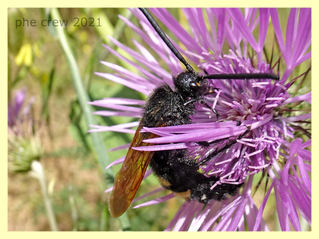 ...dopo aver fotografato una grossa femmina anni fa ...ho trovato anche il maschio di Megascolia maculata flavifrons ...quasi vicino alla zona della femmina... sempre nel litorale.