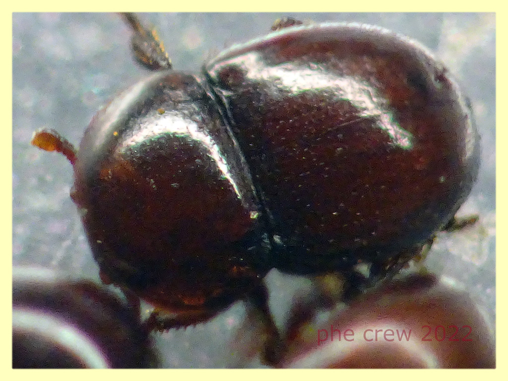 ….decine di esemplari (questi sono solo una parte)...sembrano Thorictus grandicollis da 1,6 a 1,9 mm. vicino ad un formicaio ma interrati.