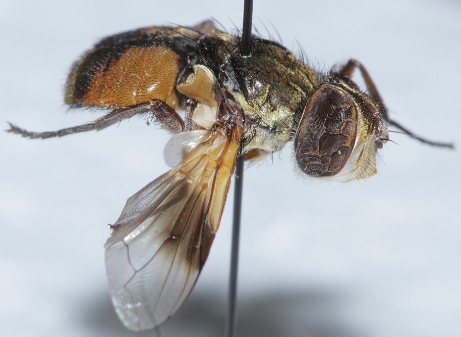 Il 7° sternite mi sembra ripiegato in senso antero ventrale, dovrebbe quindi essere una crassipennis, propongo quindi femmina di Ectophasia cf. crassipennis.