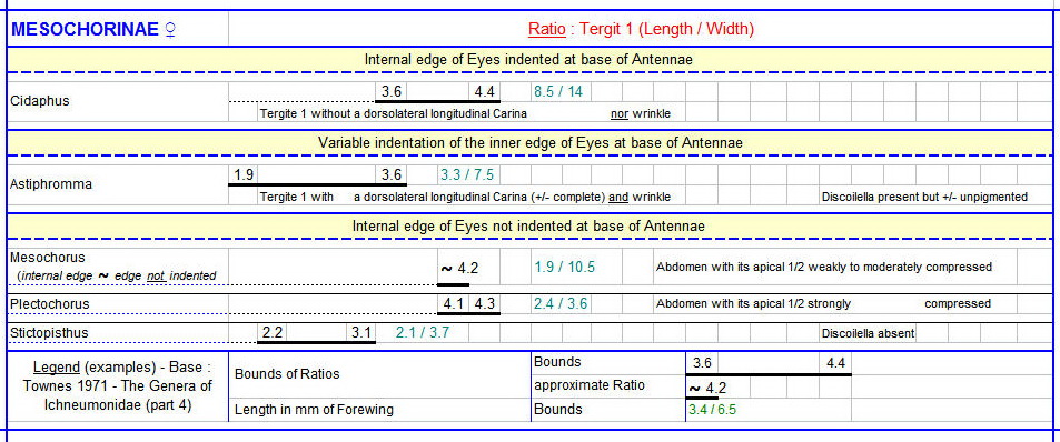 36/39 - Adaptation for the ♂ & ♀ (of France and Italy) of the subFamilies's Key contained in "The Genera of Ichneumonidae" of H. Townes (1969 - p.53/59] - [Version 2] - Ichneumonidae