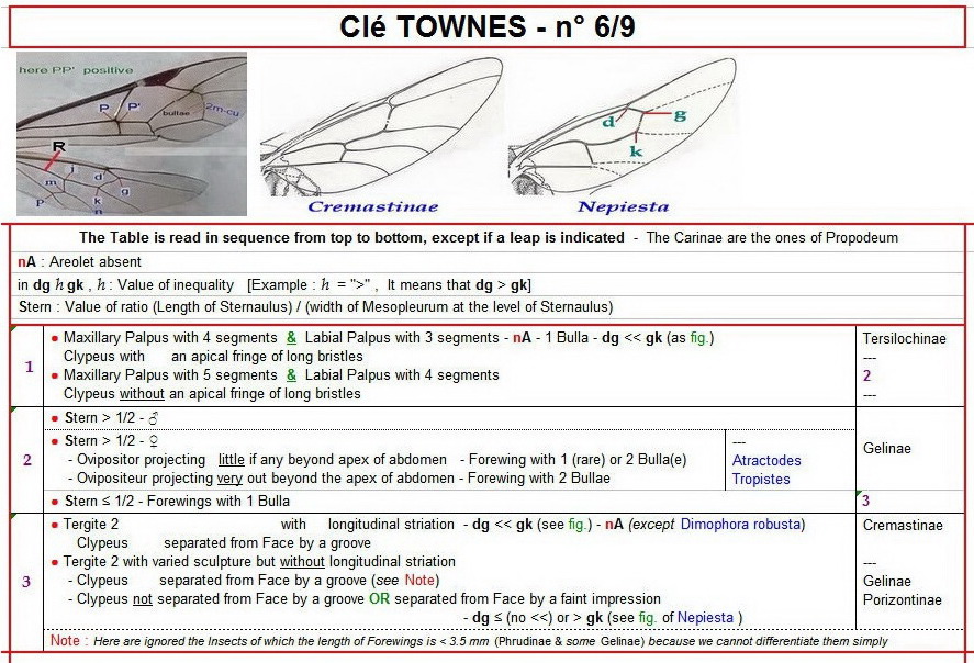 06/09 - Adaptation for the ♂ & ♀ (of France and Italy) of the subFamilies's Key contained in "The Genera of Ichneumonidae" of H. Townes (1969 - p.53/59] - Ichneumonidae