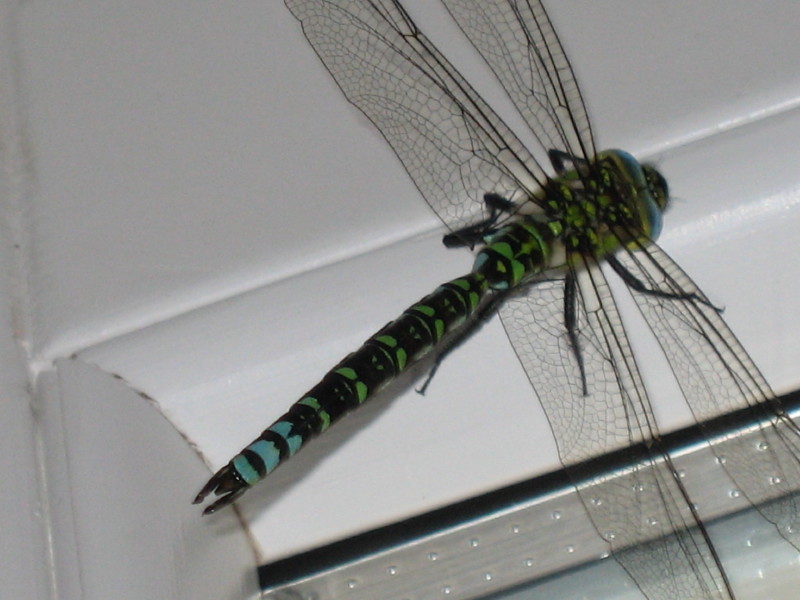 , maschio di Aeshna cyanea (Müller, 1764)Luciano Menghi ha scritto: Ambiente: è venuto a trovarmi in camera e "abbiamo dormito assieme tutta la notte"; al mattino se n'è andato con le... sue ali. quindi, coabitazione è possibile