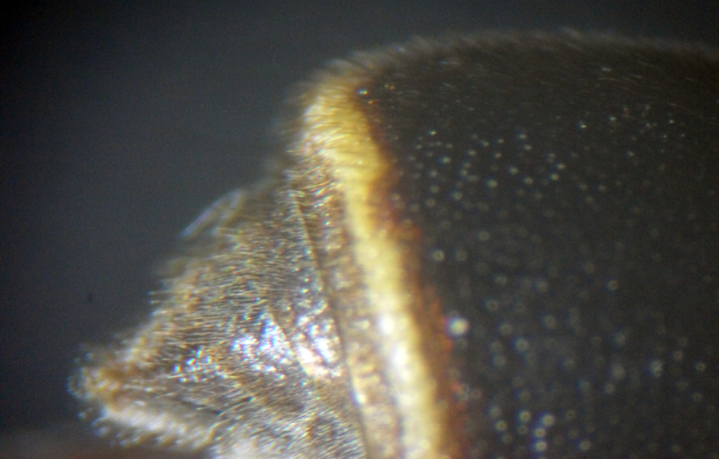 Questo esemplare mi ha fatto dannare non poco per identificarlo. Una delle caratteristiche principali delle Ropalidia del "gruppo stigma" è la presenza sul propodeo di una larga fascia gialla longitudinale mediana. L'assenza di tale fascia nel mio esemplare mi lasciava in dubbio, finché non ho avuto modo di leggere un lavoro in cui è scritto che R. rufocollaris a volte non presenta tale fascia. Il confronto dell'esemplare con la descrizione originale e con un paio di chiavi mi ha convinto che si tratta di una semplice forma di Ropalidia rufocollaris.