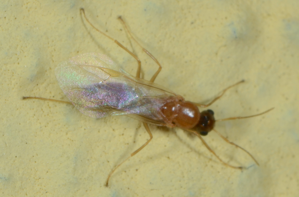 Non sono tanto sicuro che sia un sessuato di Formicidae, ma non saprei cosa altro proporre. Le dimensioni erano da formica.