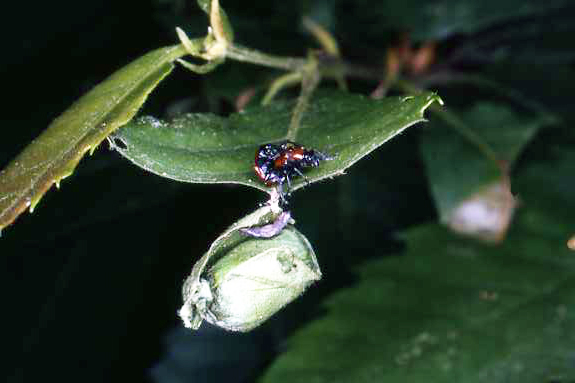In quegli anni cominciavo anche a documentare i comportamenti dei sigarai. Senza aver presente l'articolo in questione, capitò che una delle prime popolazioni che osservai fosse proprio di Attelabus nitens, e proprio su castagno (nei quasi quarant'anni successivi mi è capitato raramente di osservarlo su tale pianta). Con i limitati mezzi che avevo a disposizione, nell'estate del 1984 fotografai, nei dintorni di Levico (TN), una coppia intenta a costruire un barilotto. Abbiate pazienza per la qualità delle immagini: sono diapositive, già non eccerzionali, scansionate dopo tanto tempo; archeologia entomologica.