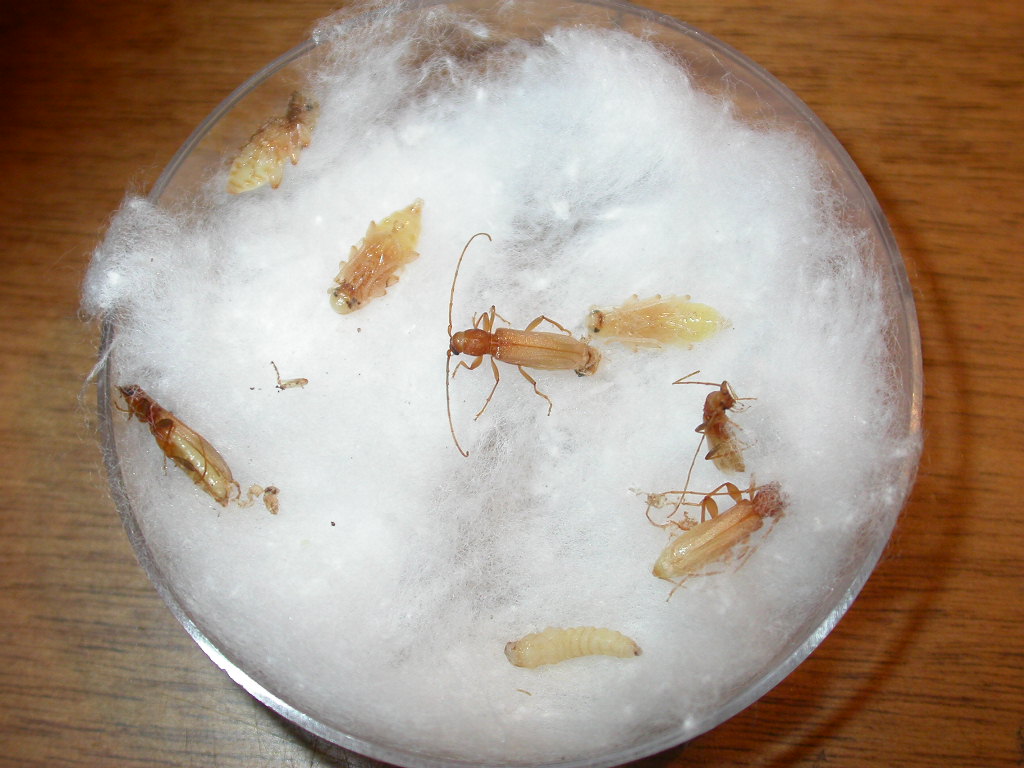 Sabato scorso ho osservato alcuni rami di leccio pesantemente attaccati da Penichroa fasciata: molte ninfe erano sotto la corteccia e non potendo portar via i rami ho prelevato le ninfe alloggiandole a casa su cotone, dentro una capsula petri: eccone alcune: