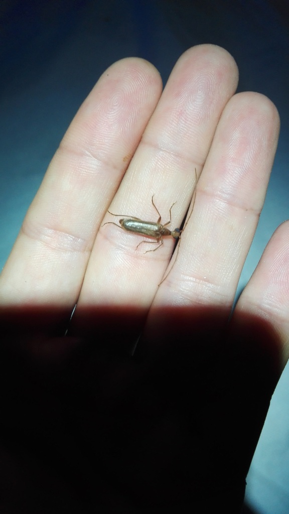 Già dalla prima metà di agosto Vesperus macropterus può essere raccolto alla lampada, ovviamente limitatamente agli esemplari di sesso maschile. Alcuni giorni fa sono andato nelle campagne di Castiadas, in Sardegna sud-orientale, per raccoglierne qualche esemplare: La zona è costituita da campi che si alternano a siepi basse di lentisco: In un ambiente come questo è molto più comodo utilizzare il telo orizzontale con la lampada sostenuta da un treppiede che può essere realizzato ad esempio con i ferri che si usano per le scaffalature metalliche. Il telo in verticale sarebbe infatti difficile da posizionare, soprattutto per la difficoltà di trovare alberi adatti dove legare il cordino a cui fissare il lenzuolo. Il treppiede si realizza molto facilmente, semplicemente legando alcune fascette di plastica in cima in modo che i tre ferri siano fissati all'apice e si possano aprire e chiudere velocemente. |