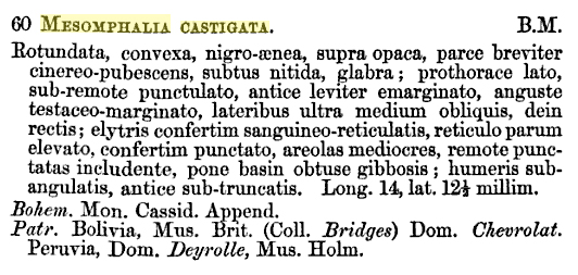 Catalogue of Coleopterous Insects in the collection of the British Museum, Part IX, Cassididae. London Boheman, C. H., 1856:45