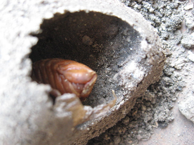 Ho richiuso tutto come meglio potevo, senza disturbare la pupa più del necessario. Per questo non l'ho neanche estratta, temendo di rompere la celletta.