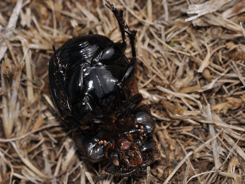 Ciao Claudio. Non ci siamo incontrati per poco. Ero lì il giorno prima. Ovviamente confermo la determinazione. Nello stesso posto puoi facilmente incontrare, sempre nello sterco o intorno (durante il giorno, più facile trovarli nel terreno sotto lo sterco) anche Copris hispanus cavolinii, più grande, senza cornetti protoracici ma in compenso col corno cefalico più sviluppato