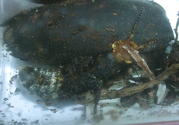 Beh, neanche questo lo avevo mai visto... non mi sembra il solito Platydracus. Stava (come l'altro andato perduto, gli scarabi e qualche aphodino) su una fatta di canidae vecchia e rinsecchita. Non sembrava di lupo, ma da quelle parti non si può mai dire....