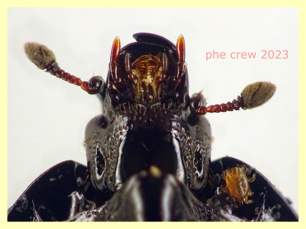 ...Margarinotus brunneus, trovati due esemplari di 8 mm. in carcassa di Cane. Le foto sono miste dei due esemplari (uno e' sicuramente femmina); la foto con le zampe e' di un solo esemplare.