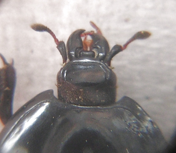 Ho trovato alcuni di questi histeridi sul limitare della faggeta (1.150 m circa) in una valletta ricca... diciamo di humus... vaccino, equino, suino e probabilmente umano. Questo esemplare misura sugli 11,5 mm. |