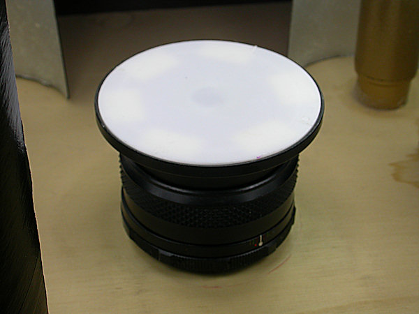 L'obiettivo montato nel momento della foto è un EL Nikkor 75/4 (un obiettivo da ingranditore, quindi senza regolazione della messa a fuoco, che si fa variando l'altezza del gruppo obiettivo-soffietto.fotocamera o, meglio, del piano su cui poggia il soggetto).