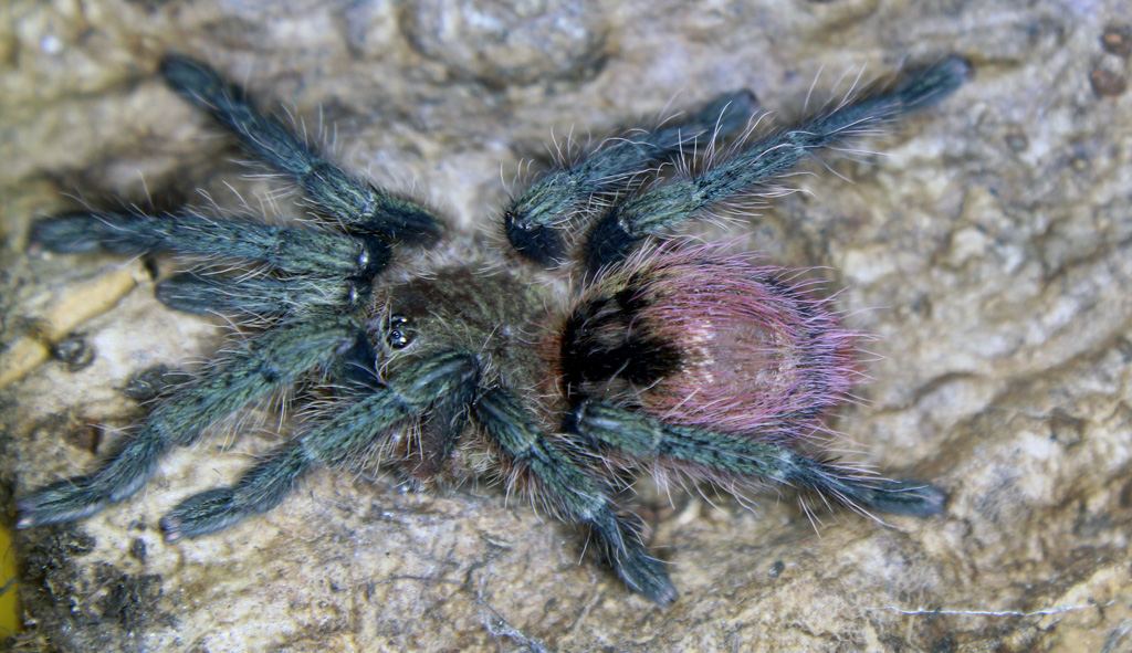 Cyriocosmus elegans, meno di un centimetro considerando pure le zampe.