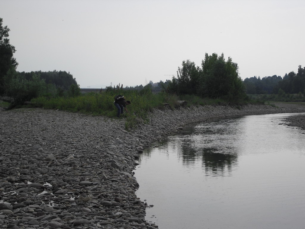 Finito il sentiero andiamo giù sul greto dell'Enza. Io lavo l'escremento in riva, non trovando niente, raggiungo Matteo che sta cercando in un'area con erbacee riparie (Verbascum, cardi, bardana, iperici e altre...).