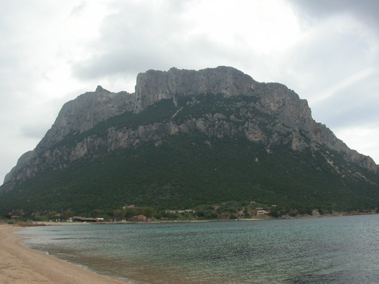 La porzione più alta e massiccia dell’isola vista dallo Spalmatore di Terra, il punto più accessibili di Tavolara, posto a ovest, dove sono presenti i punti di attracco e un ristorante aperto solo in estate: