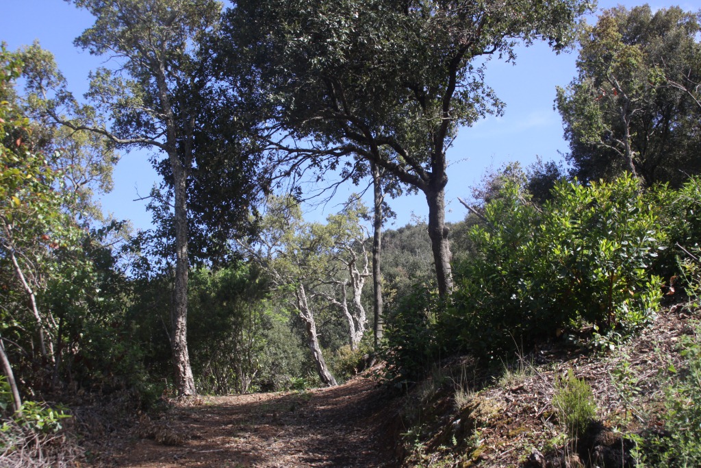 Questo è l'ambiente che mi piaciuto di più, e dal quale abbiamo tratto le osservazioni più interessanti. Sono presenti sughere e lecci, di solito di dimensioni cospicue, ma anche con la presenza di aree in cui il taglio ha favorito la crescita di rigetti cespugliosi, molto frequentati da varie specie di coleotteri.